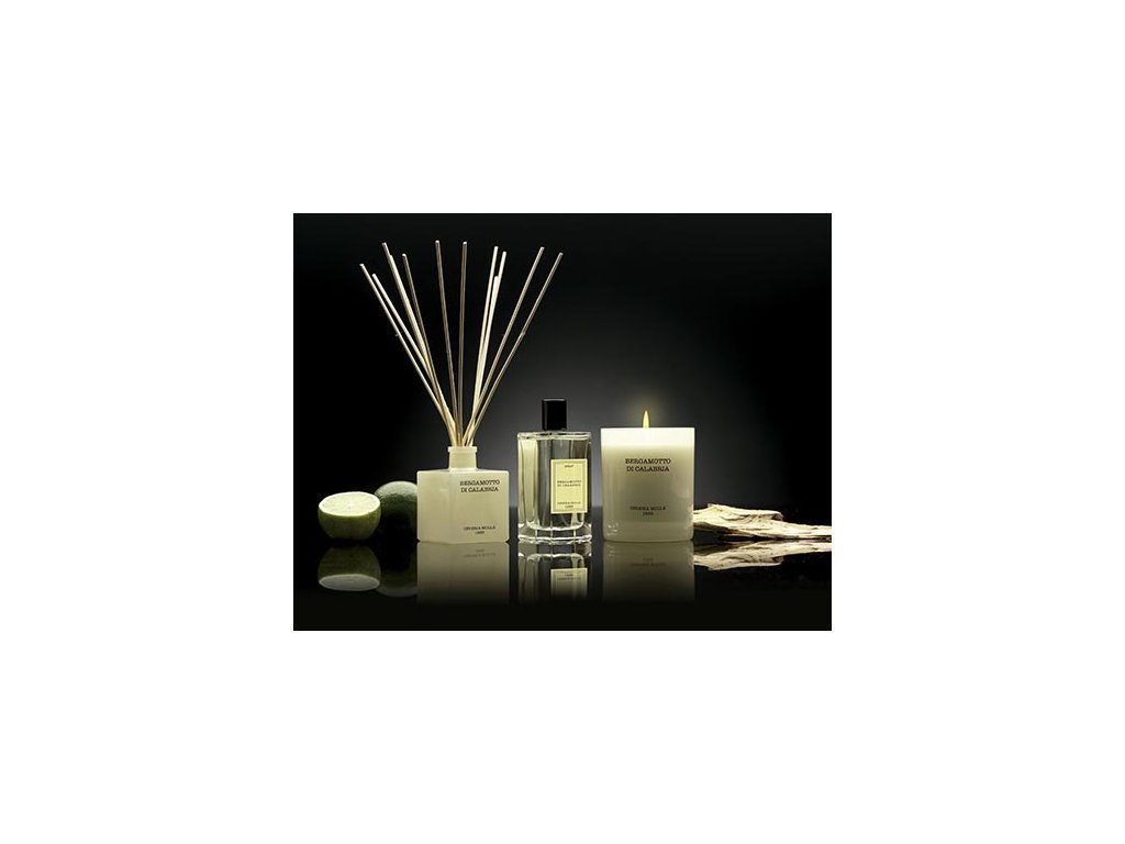 Bergamotto di Calabria- Sviežosť zelených lístkov bergamotu dodáva na výraznosti. Preneste sa mysľou do Kalábrie na piesočnaté pláže zabalené do vône citrusov z okolitých stromov a kríkov... Spoznáte jemne sladkasté tóny pižma a drevitú arómu santalového dreva. Nestarnúce, obľúbené spojenie dreva a bergamotu. Táto vôňa, navodí dokonalú atmosféru vo vašom dome.