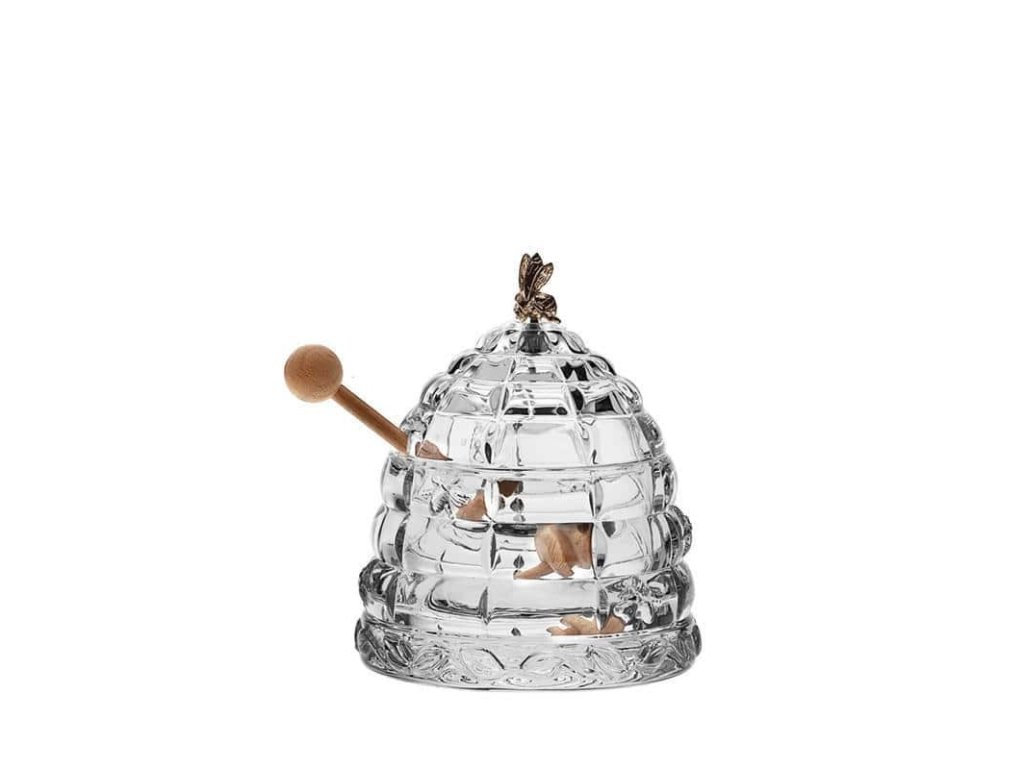 Bohemia Crystal dóza na med v tvare včelieho úľa je dekoráciou na každý stôl, jedálenský kút alebo kuchynskú linku. Určite pre ňu aj vy nájdete vhodné miesto, aby vynikol jej originálny dizajn. Dóza je primárne určená ako nádoba na med. Môžete ju naplniť aj cukrovinkami, orieškami alebo inými dobrotami. Určite pre ňu aj vy nájdete vhodné miesto, aby vynikol jej originálny dizajn.