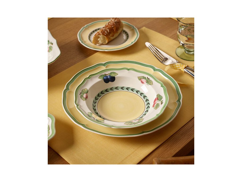 Optimálna hĺbka na veľké šaláty s prílohami a omáčkami, možno použiť aj na prílohy, súčasť riadu z kolekcie French Garden Fleurence.