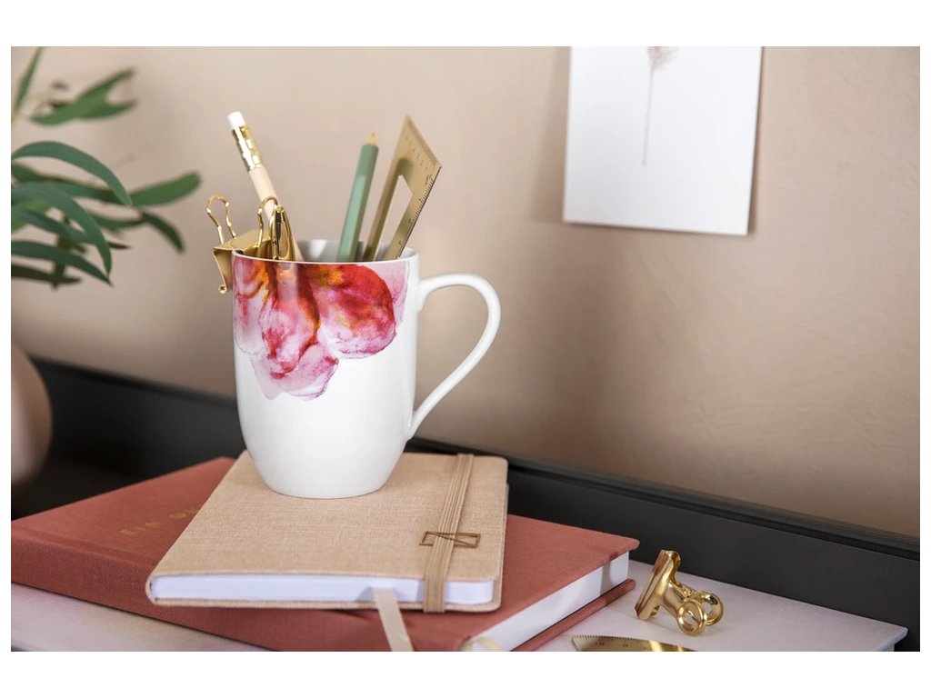 Viacúčelový: moderný hrnček s kvetinovým vzorom je nielen ideálny na podávanie horúcich nápojov a cupcakes, ale slúži aj ako dekoratívna odkladacia nádoba na štetce, perá a make-up.