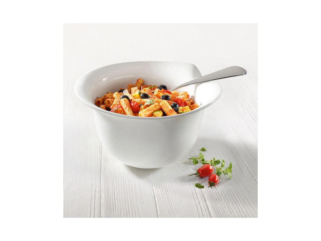 Hlboká misa vhodná na všetky druhy cestovín, chytrá zárez na okraji pre lyžicu na cestoviny, možno použiť aj na iné jedlá.