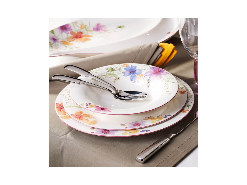 Veľkosť je vhodná na servírovanie hlavných jedál, koláčov alebo dezertov. Dá sa kombinovať so všetkými výrobkami z kolekcie Mariefleur, Jasné farby upútajú pozornosť.