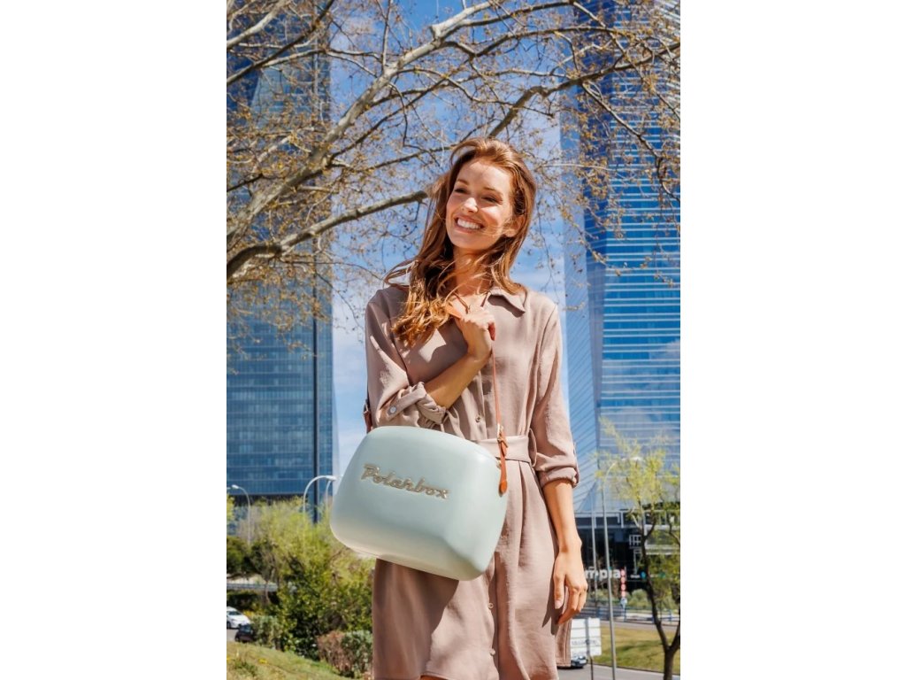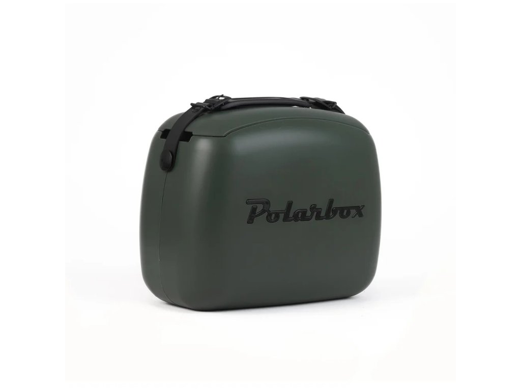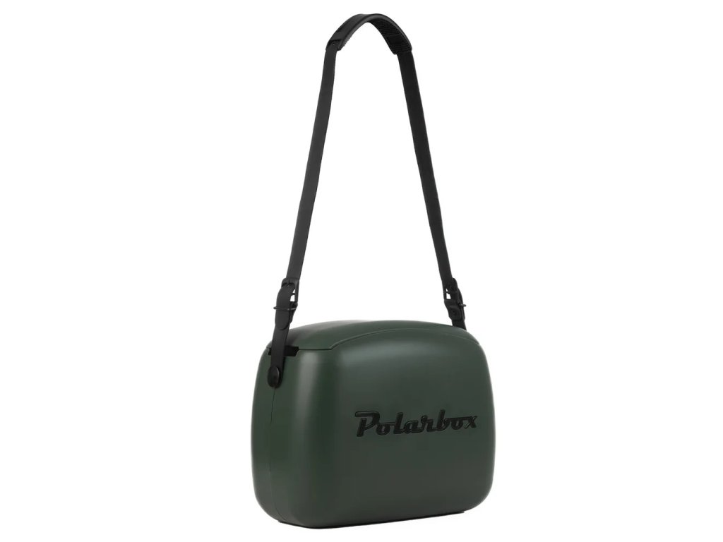 Ľahký prenosný chladiaci minibox – kabelka do mesta alebo na párty v retro designe, edícia Classic Urban. V tmavo zelenom odtieni "Green Forest", s nastaviteľným koženým popruhom v čiernej farbe, ladiaci s nápisom Polarbox na kabelke. Cez rameno alebo do ruky, vnútorný objem 6 l.