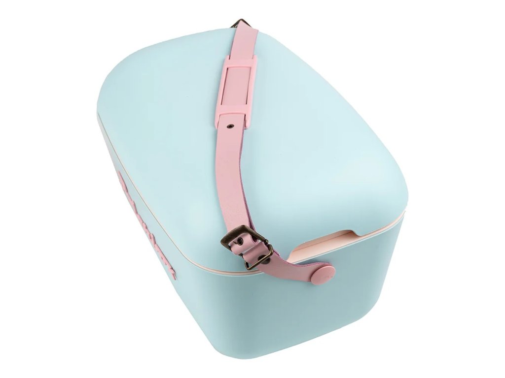 Nevyhnutnosť tohto leta! Ľahký prenosný chladiaci box v retro-vintage designe, ktorému len tak neodoláte. Pastelovo modrý, s nastaviteľným popruhom vo farbe nápisu, vyrobený z eko kože – do ruky či cez rameno, vnútorný objem 12 l, čistá hmotnosť len 1 kilo. Retro k vode, na dovolenku, do auta, na piknik, ako štýlový doplnok na výlet, trendy box na skúter alebo dokonalý plávajúci bar do bazéna. Tým všetkým môže byť váš nový cool spoločník.