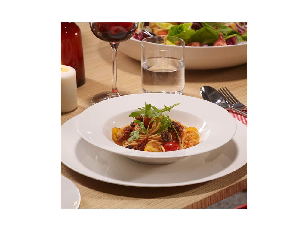 Veľkosť je vhodná na servírovanie rôznych jedál, možno použiť ako tanier, široký okraj na čisté servírovanie, dobre sa kombinuje s riadom For Me.