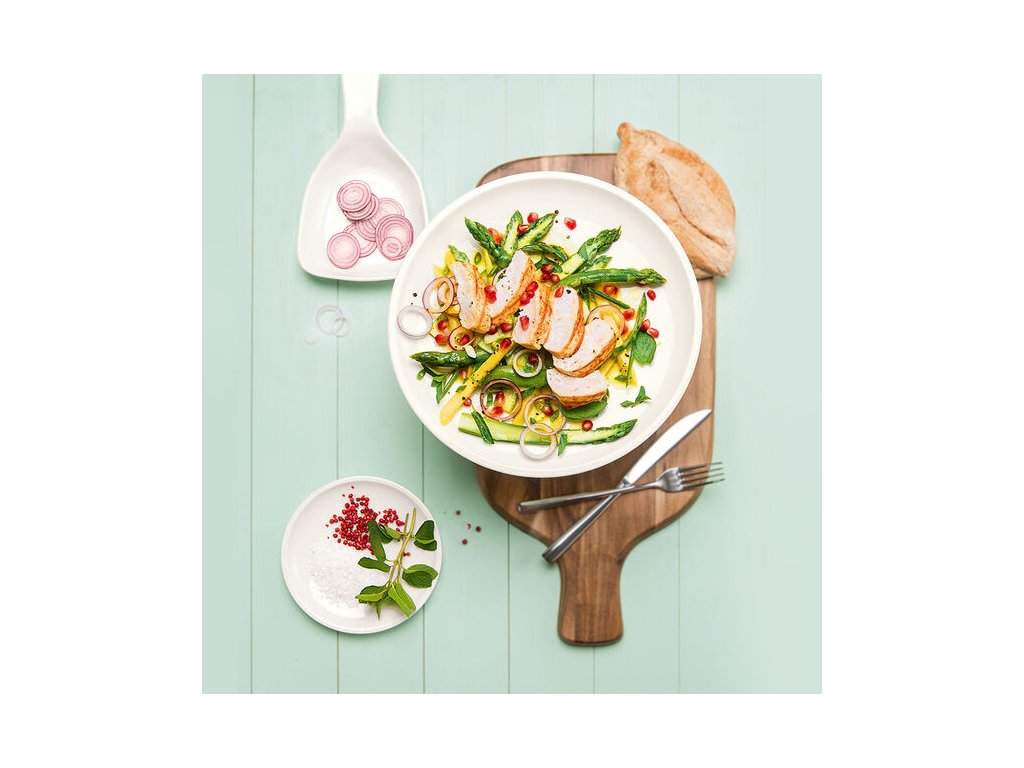 Drážky na krájanie a malá priehradka na zachytávanie tekutín, rukoväť na jednoduché servírovanie, optimálne na aranžovanie a krájanie rôznych potravín.