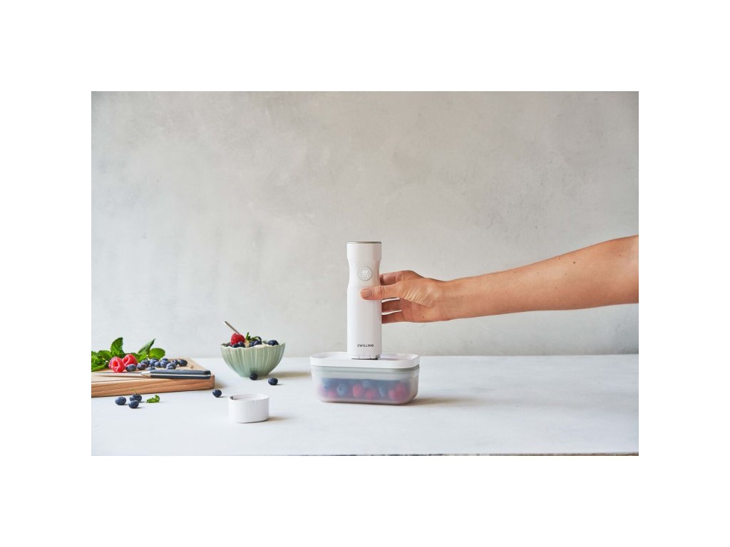 Funguje to takto: Nasaďte vákuovú pumpu na ventil nádoby alebo vrecka a stlačením tlačidla odsaje vzduch za pár sekúnd. Po dosiahnutí dostatočného podtlaku sa automaticky zastaví a zablokuje chuť, arómy a vitamíny.
