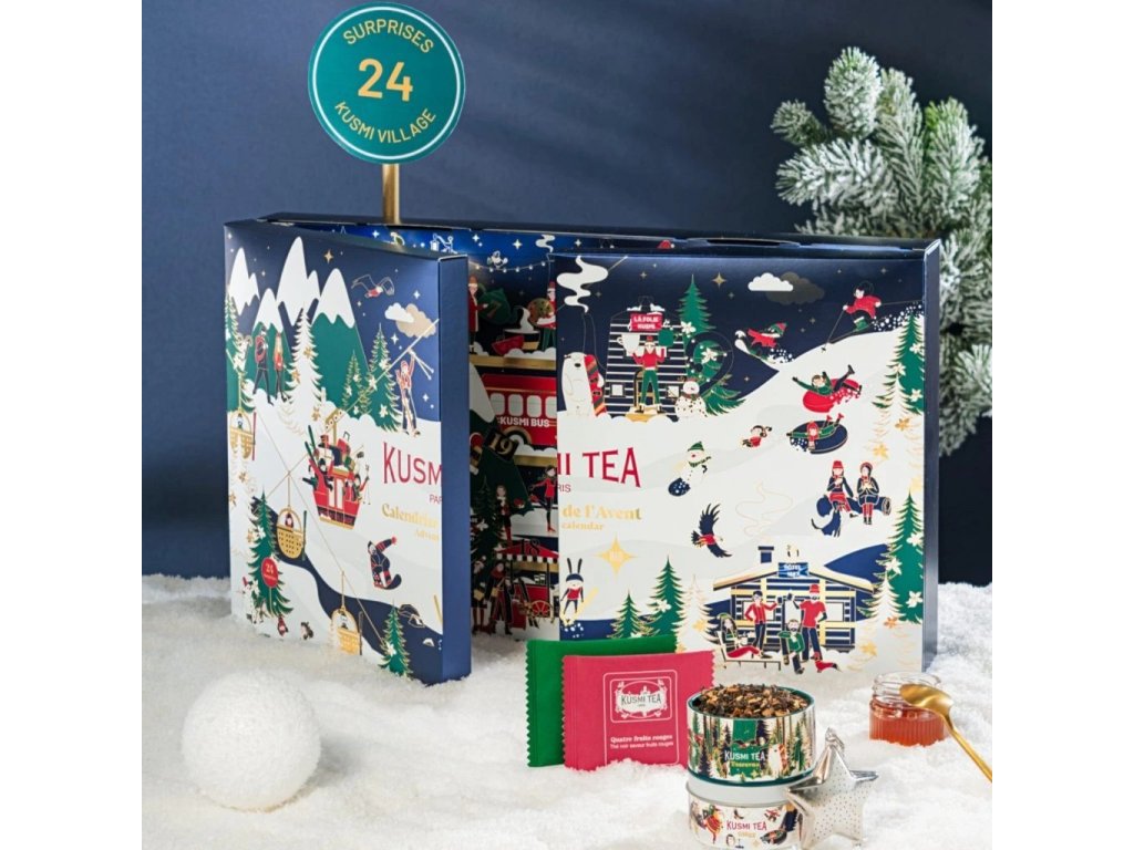 Každé okienko obsahuje ovocný, čierny, zelený alebo biely čaj Kusmi vo vrecúšku alebo malej plechovke.