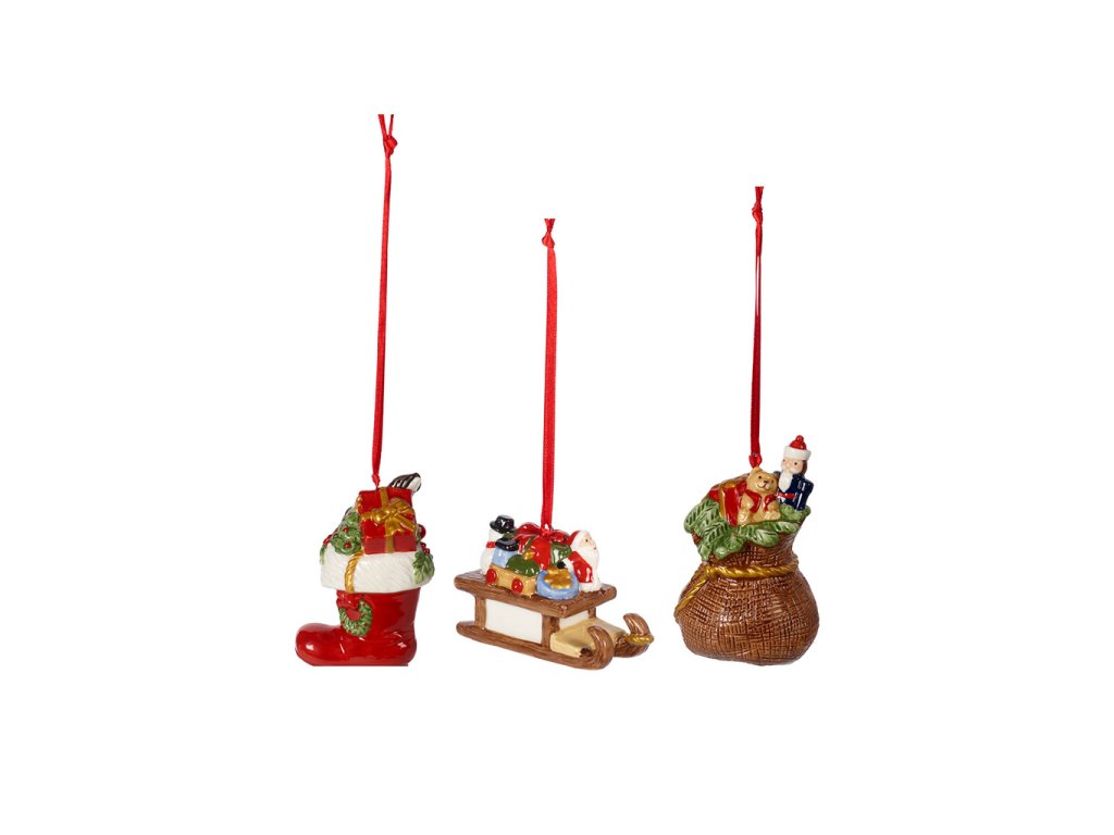 Sviatočný doplnok: túto krásnu sadu troch závesných darčekových dekorácií môžete použiť aj s vybraným vencom pre hravý zimný šarm.