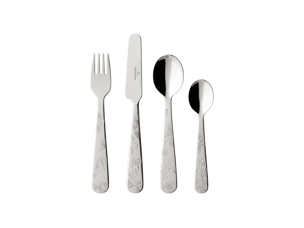Dokonale vyvážený detský príbor pozostávajúci z 1x lyžice, 1x vidličky, 1x noža a 1x čajovej lyžičky, ideálna veľkosť pre detské ruky.