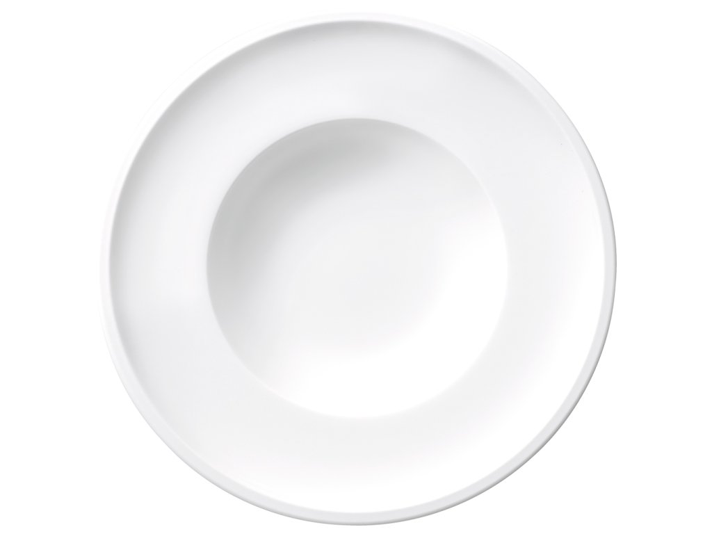 Optimálna hĺbka pre husté polievky, široký okraj umožňuje čisté servírovanie a možno ho použiť ako podnos na príbory.