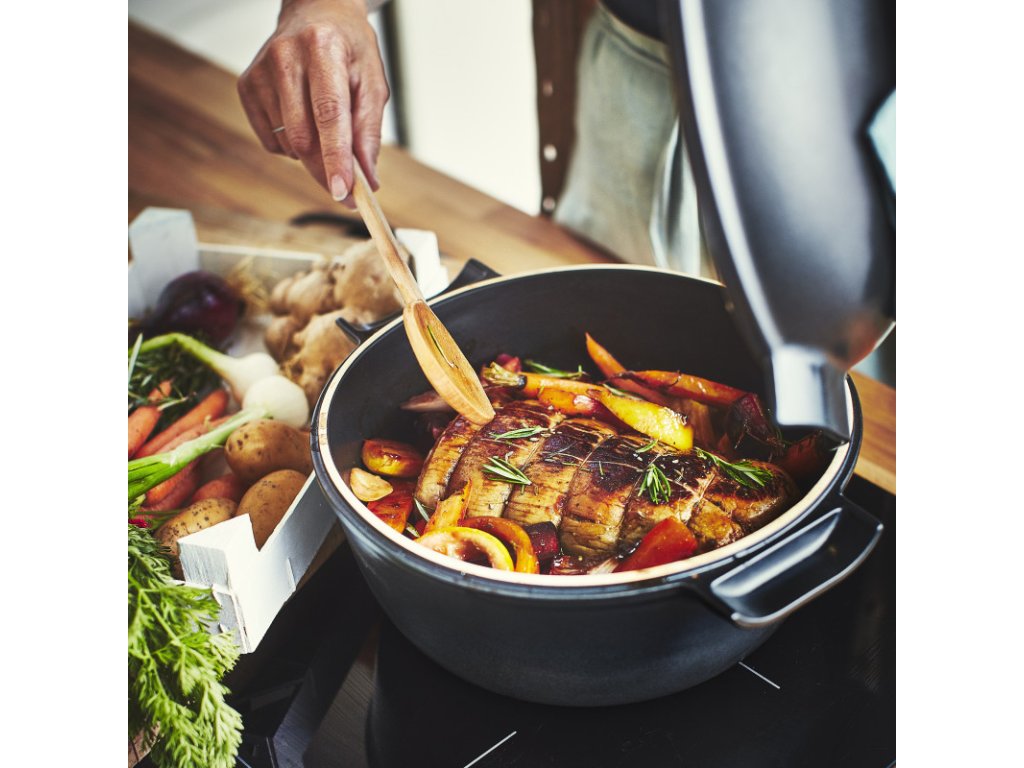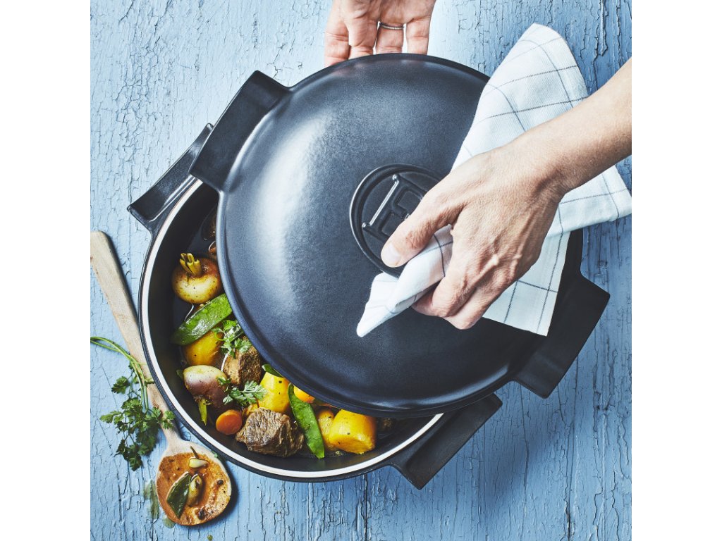 Homogénne rozloženie tepla v keramike je ideálne na jemné uvoľňovanie chutí pri nízkej teplote a na šetrné varenie bez pripálenia.