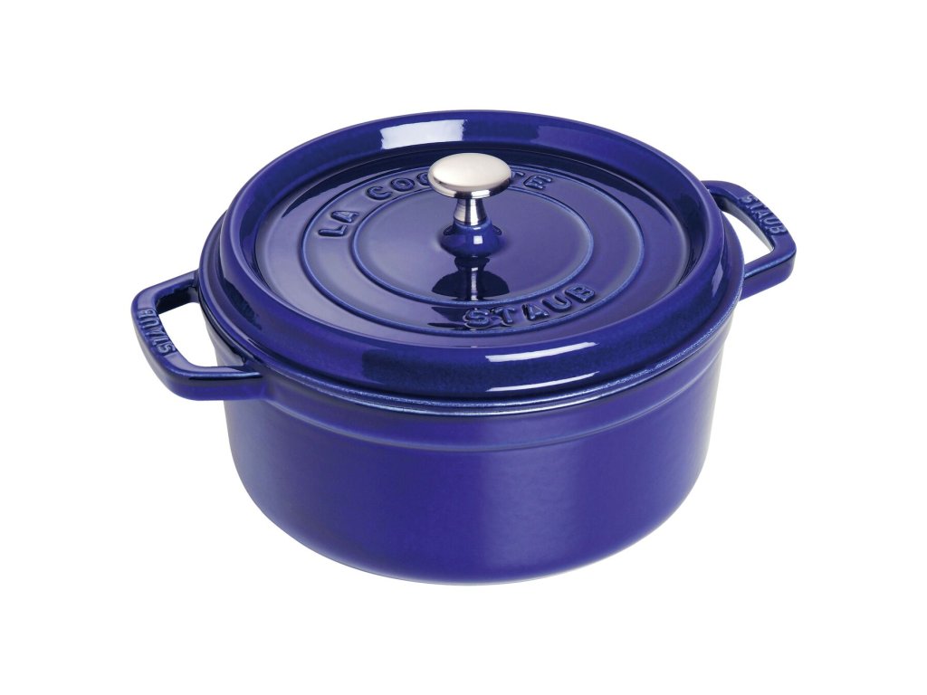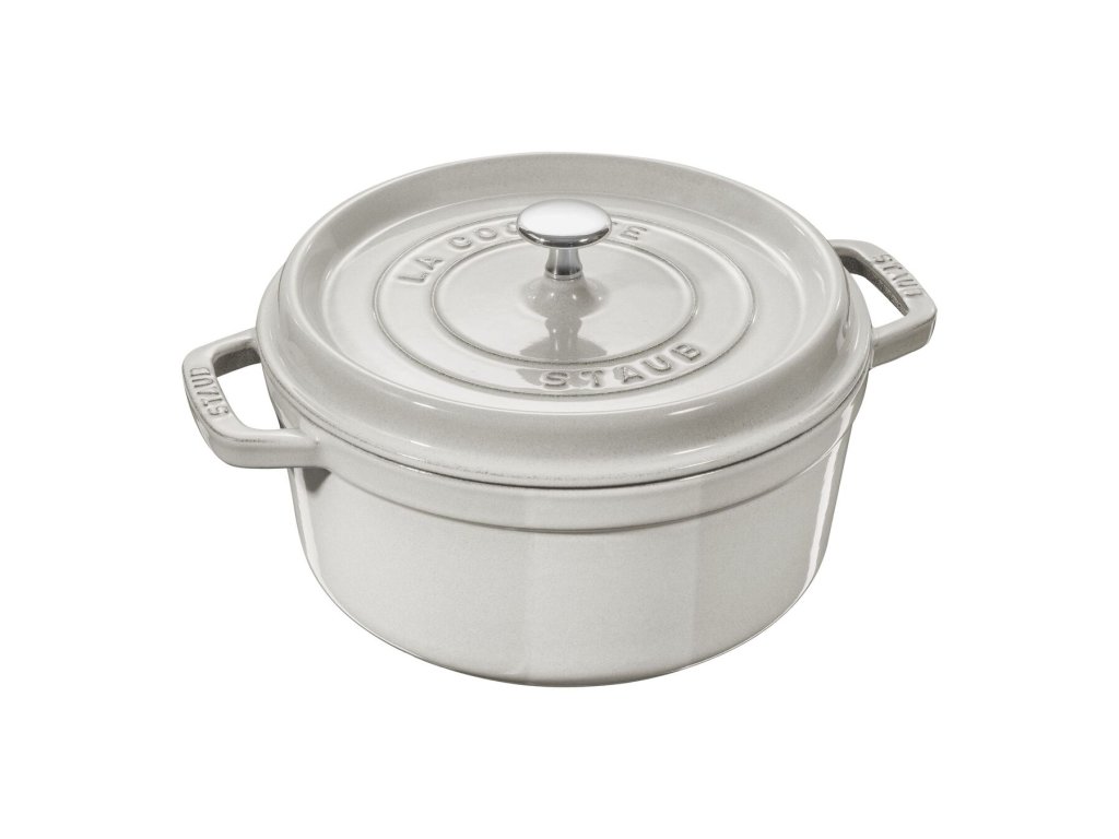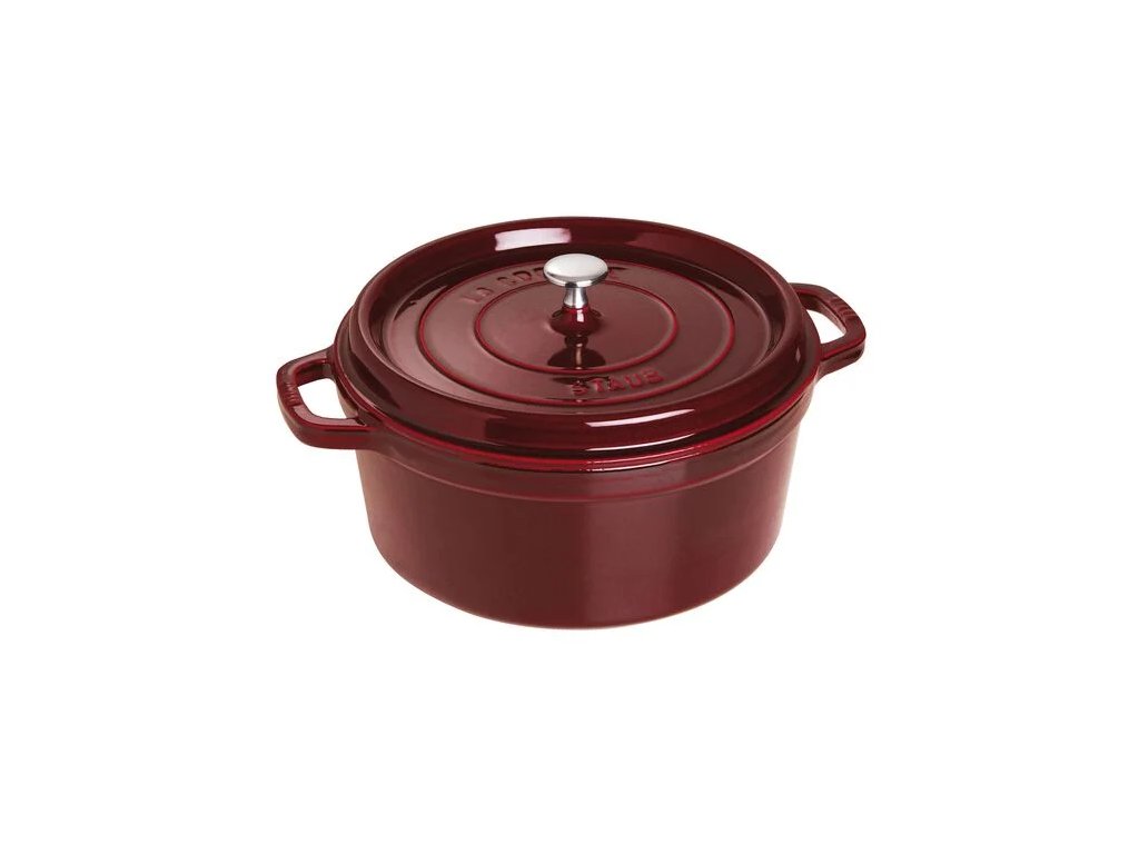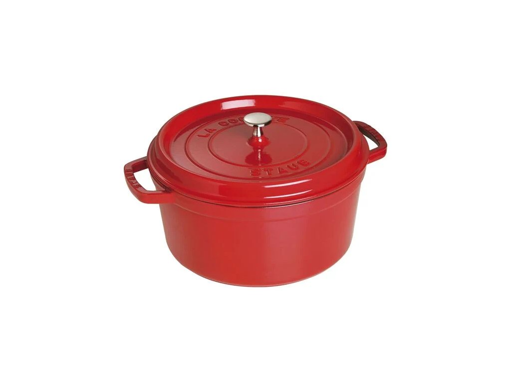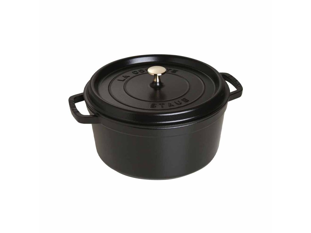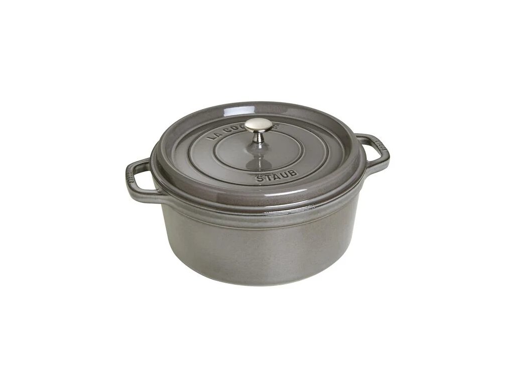 Veľký okrúhly hrniec Cocotte Staub je skvelým pomocníkom na varenie pre veľký počet ľudí, vďaka čomu si môžete uľahčiť prípravu jedál na večierky. Jeho priestranný vnútorný priestor je neprekonateľný na pomalé varenie mäsa a zeleniny, na varenie výdatných dusených pokrmov a polievok. Liatina má výnimočné vlastnosti udržiavania tepla, takže sa hrniec rovnomerne zahrieva v celom objeme.