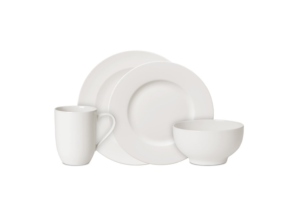 Set obsahuje: 4x plytký tanier (27 cm), 4x raňajkový tanier (21,5 cm), 4x miska (750 ml), 4x šálka (340 ml)