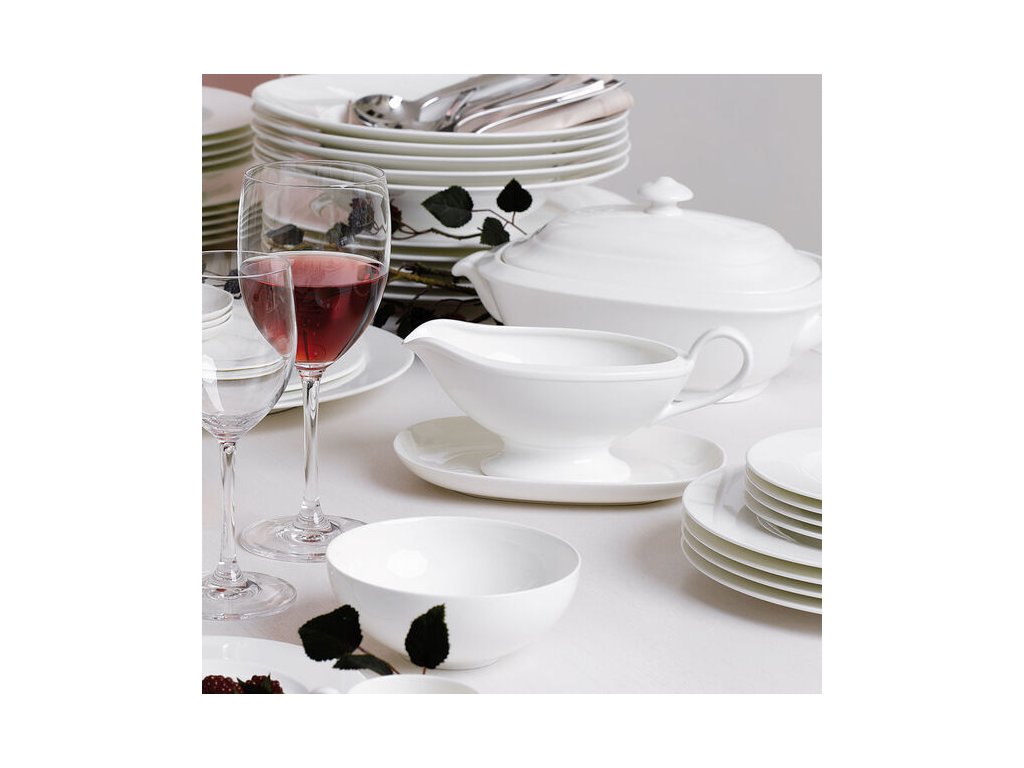 Zakrivená rukoväť na bezpečné podávanie horúcich omáčok, porcelán udrží obsah dlho teplý, elegantný dizajn sa hodí do všetkých kolekcií.