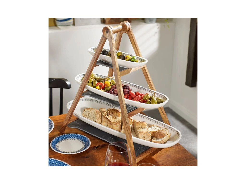 Podlhovastý tvar ideálny na bagety, zvýšený okraj na bezpečné servírovanie, dokonale sa hodí na poschodový etažér z kolekcie Artesano.