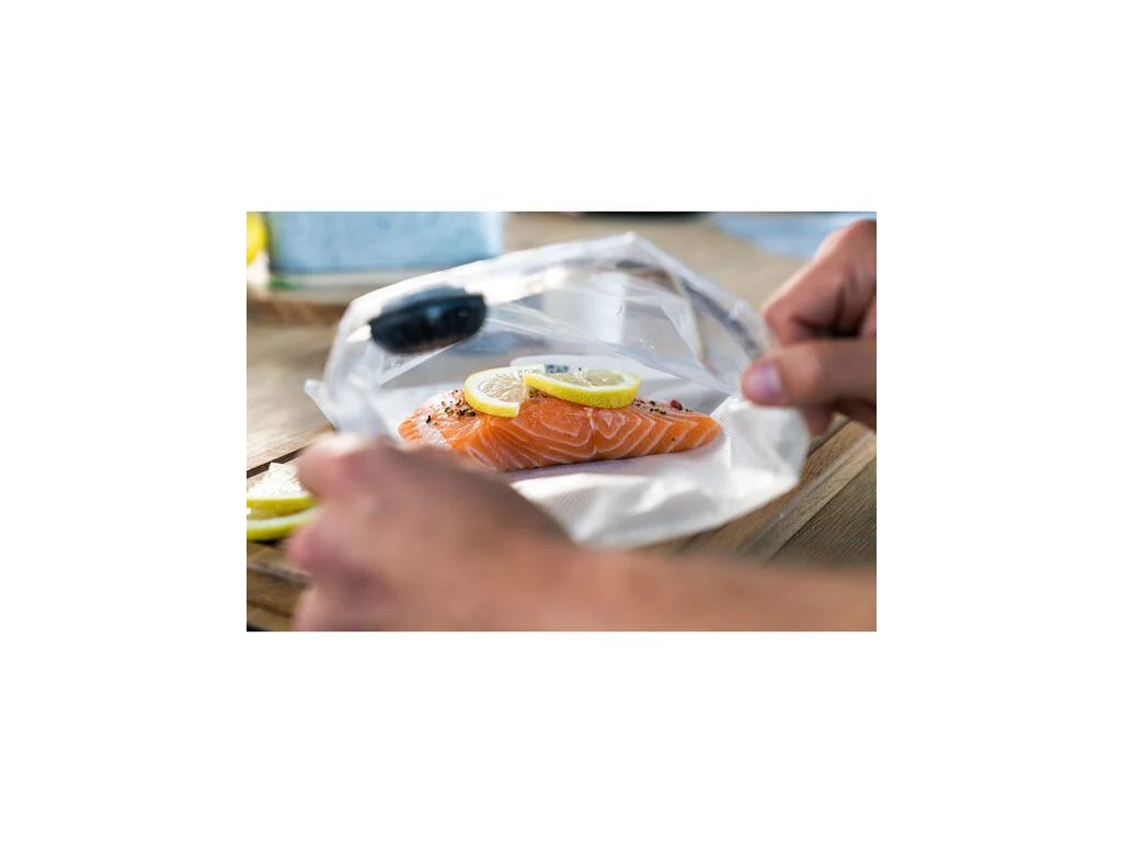 Vákuové vrecká Fresh & Save sú navrhnuté tak, aby v spolupráci s vákuovou pumpou udržali potraviny čerstvé až päťkrát dlhšie ako pri skladovaní bez vákuovania. Tieto vrecká sú k dispozícii v rôznych veľkostiach. Zmrazte si celé večere, ohrejte obed pre jedného alebo zabaľte čerstvé prísady. Jednoduché uzatváranie na zips zaručuje pevné utesnenie a žiadne rozliatie a priložené tesnenie proti tekutinám pomáha zabezpečiť, aby vákuová pumpa neabsorbovala tekutiny.