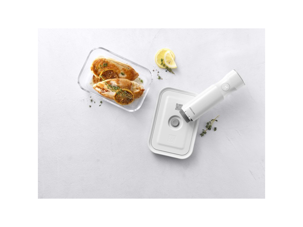 Funguje to takto: Nasaďte vákuovú pumpu na ventil nádoby alebo vrecka a stlačením tlačidla odsaje vzduch za pár sekúnd. Po dosiahnutí dostatočného podtlaku sa automaticky zastaví a zablokuje chuť, arómy a vitamíny.