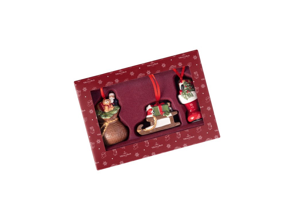 Sviatočný doplnok: túto krásnu sadu troch závesných darčekových dekorácií môžete použiť aj s vybraným vencom pre hravý zimný šarm.
